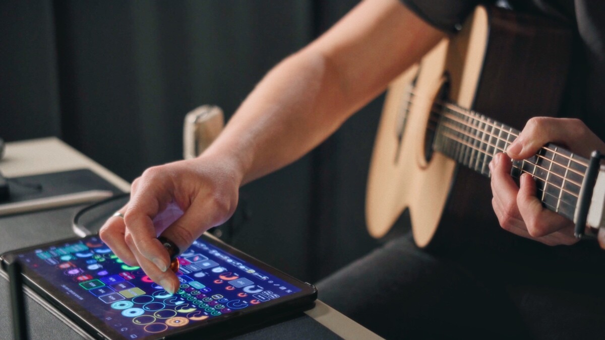 The iPad sits right in front of you at eye level. No bending down to tweak something between songs. Everything is on the screen, easy to see and easy to reach. And Loopy Pro handles live audio well. I've been using it on stage for almost 2 years and it's been solid.
